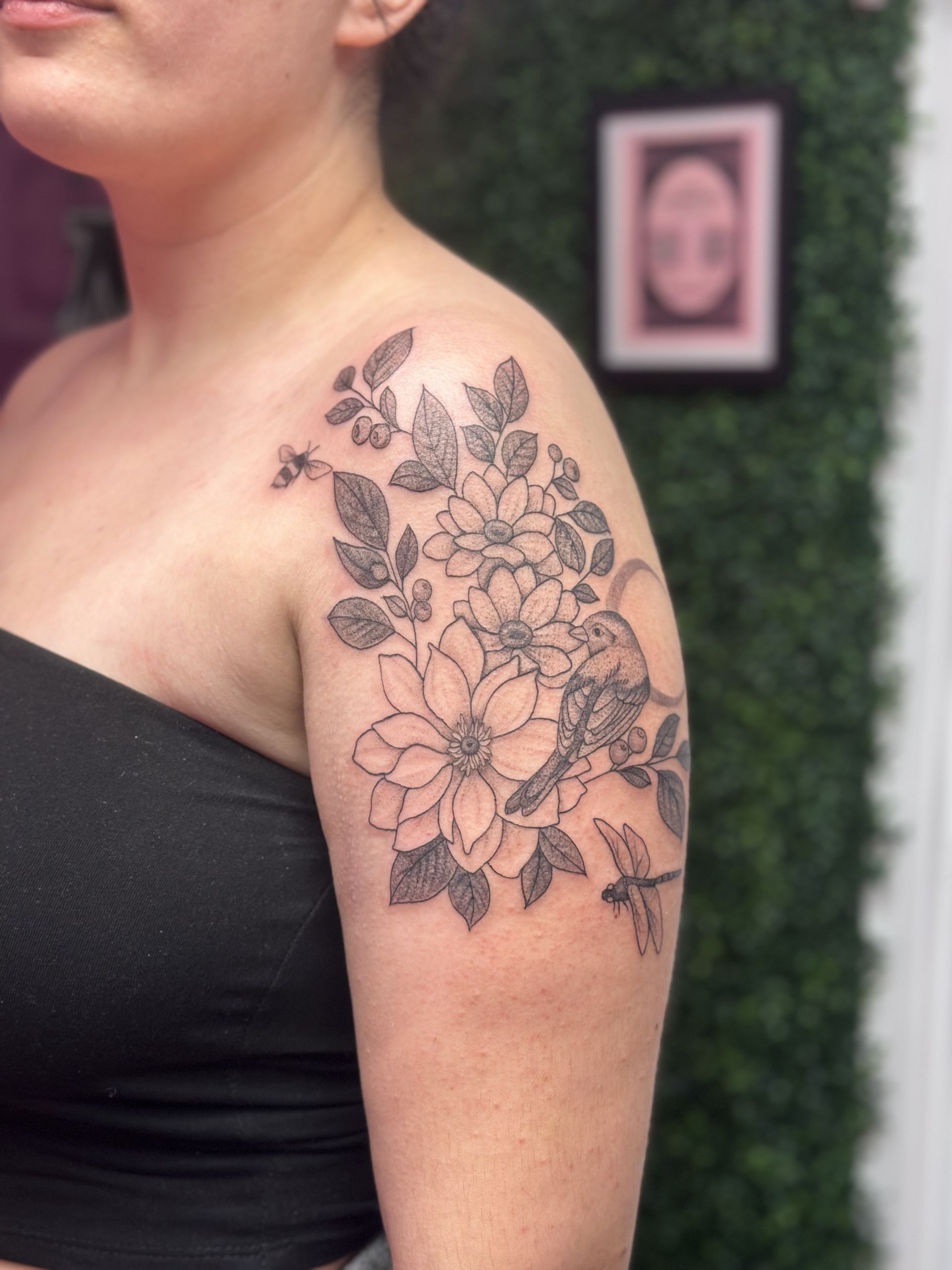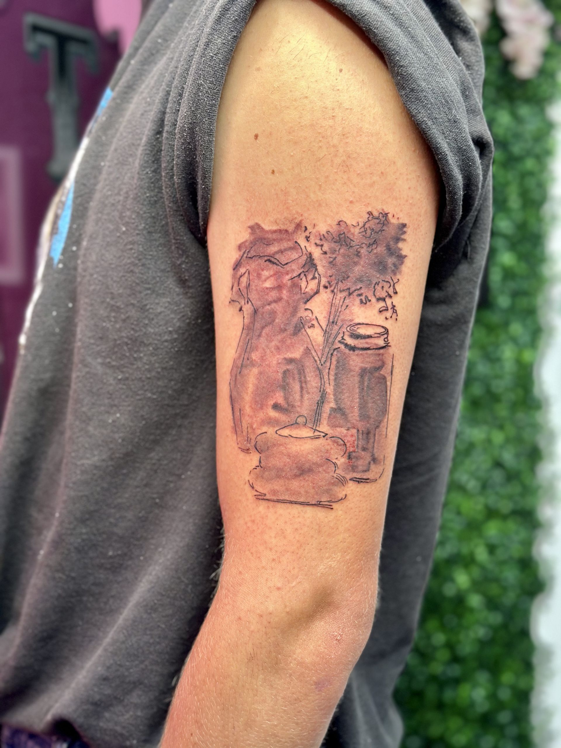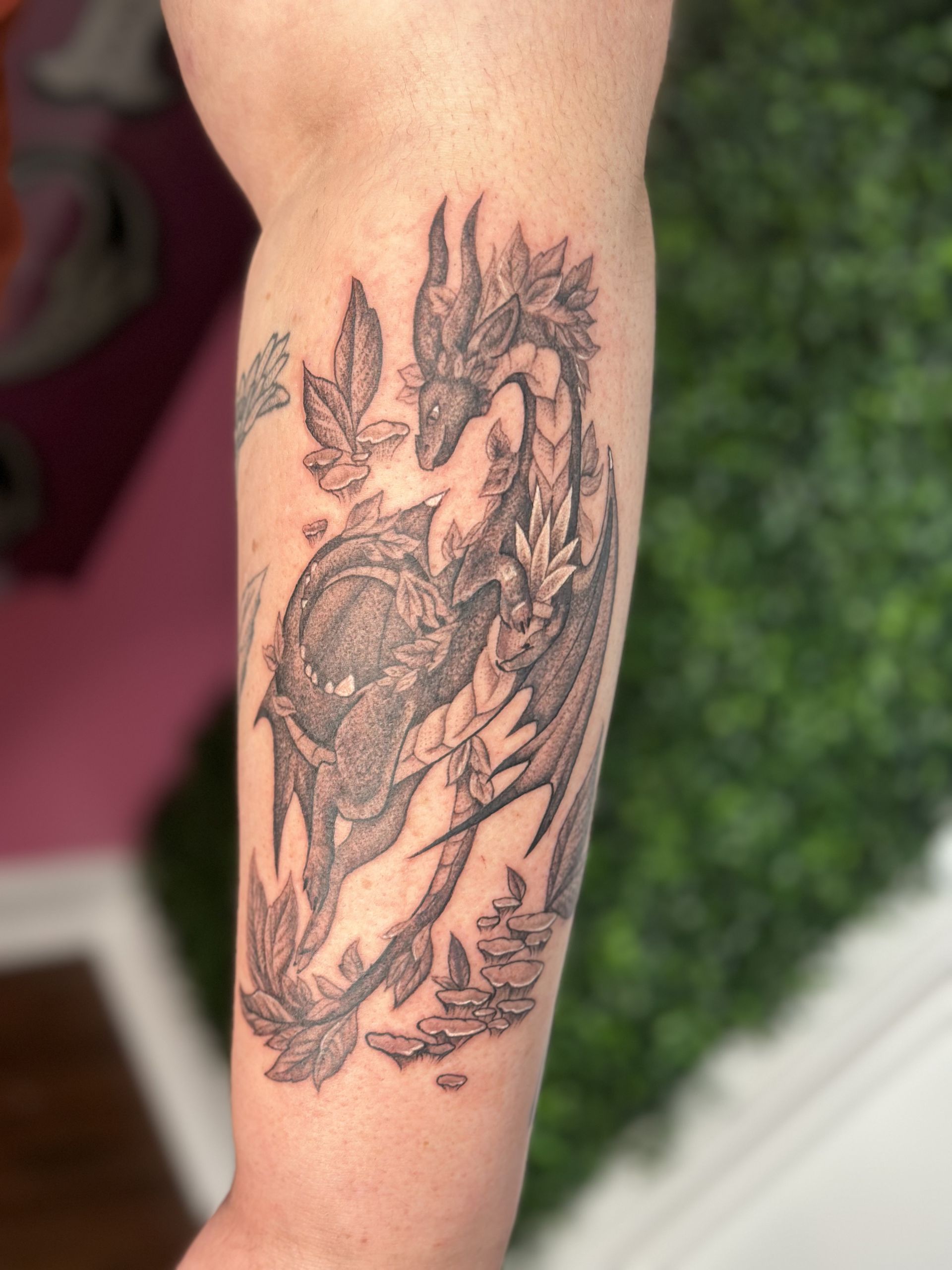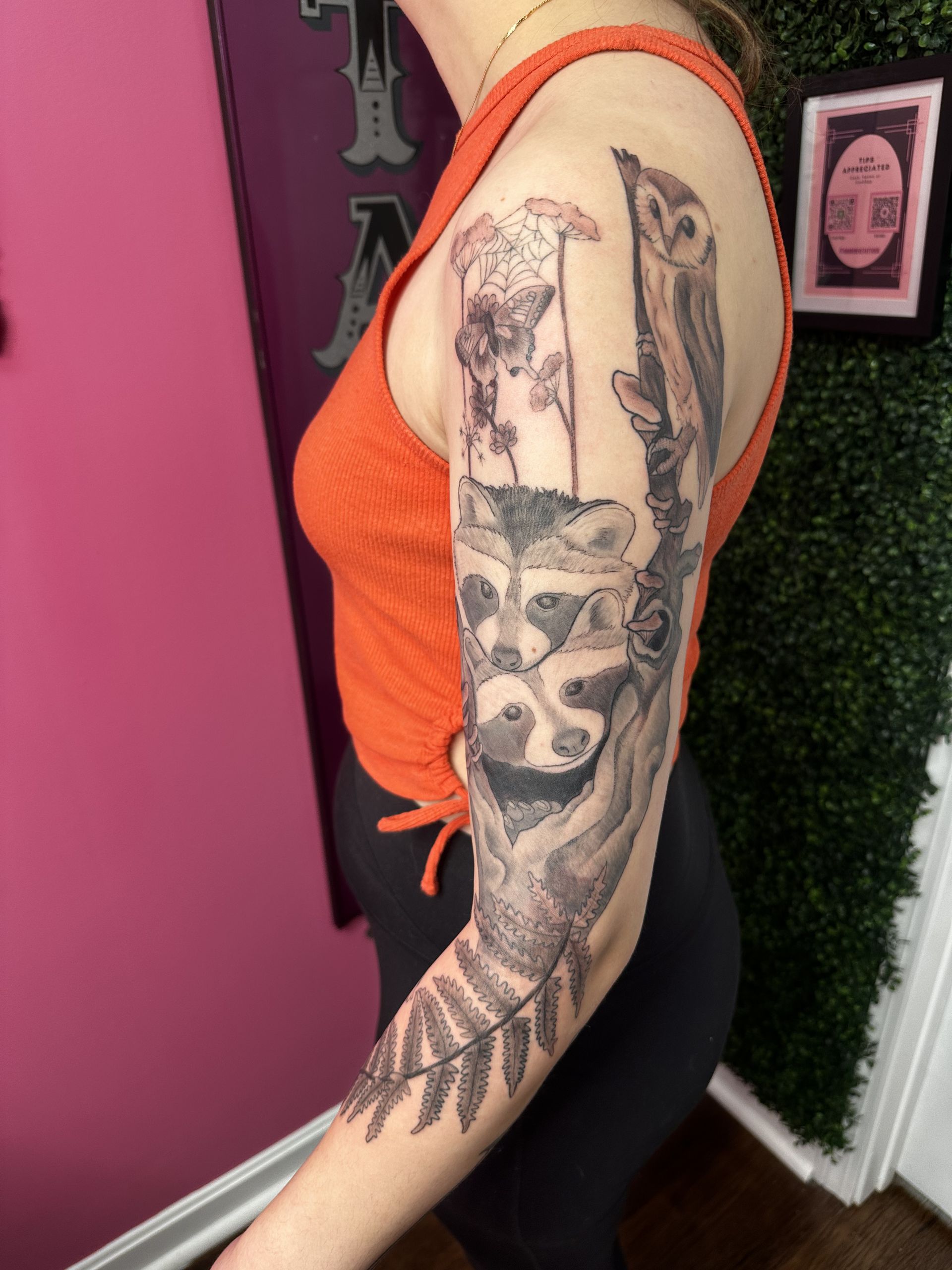 I'm Jakki! I am a female tattoo artist in Worcester specializing in fine line, and illustrative tattoos. I have been tattooing for 5 years and it never gets old. Pets and animal, nature and whimsical subjects are just a few of my favorites to create! As a proud member of the neuro-spicy LGBTQ community, I've made it my goal to be a go-to safe space for you! I create custom, one-of-a-kind designs in my private tattoo room so I can cater more to your individual needs during the tattoo process. Come check me out at Worcester's #1 rated tattoo shop, Elegance Piercing & Tattoo and start your next tattoo journey today!