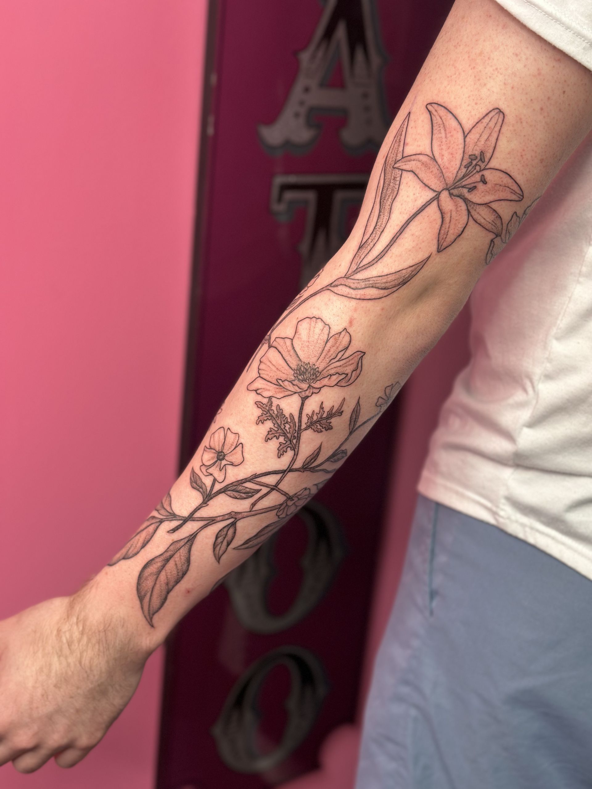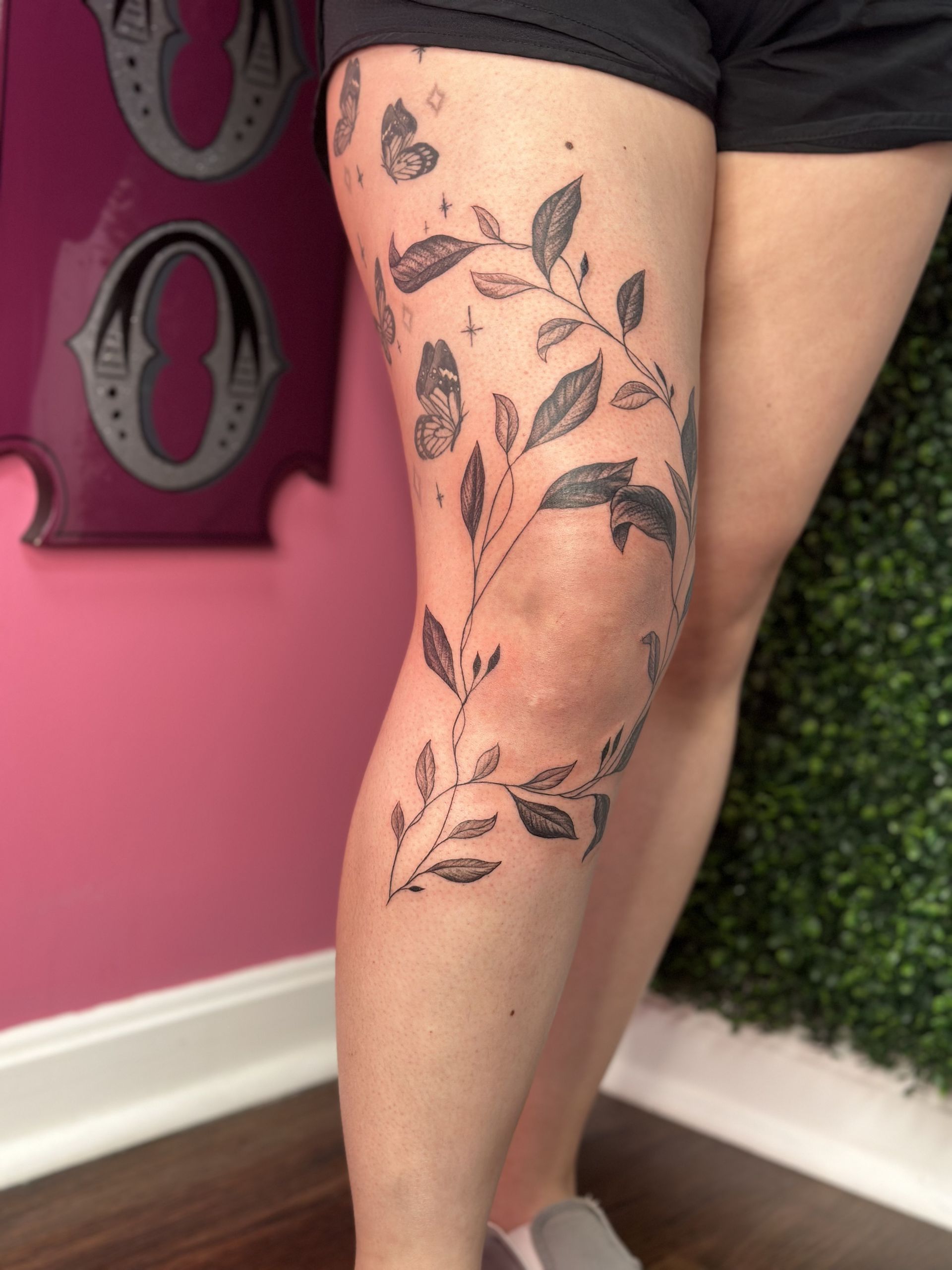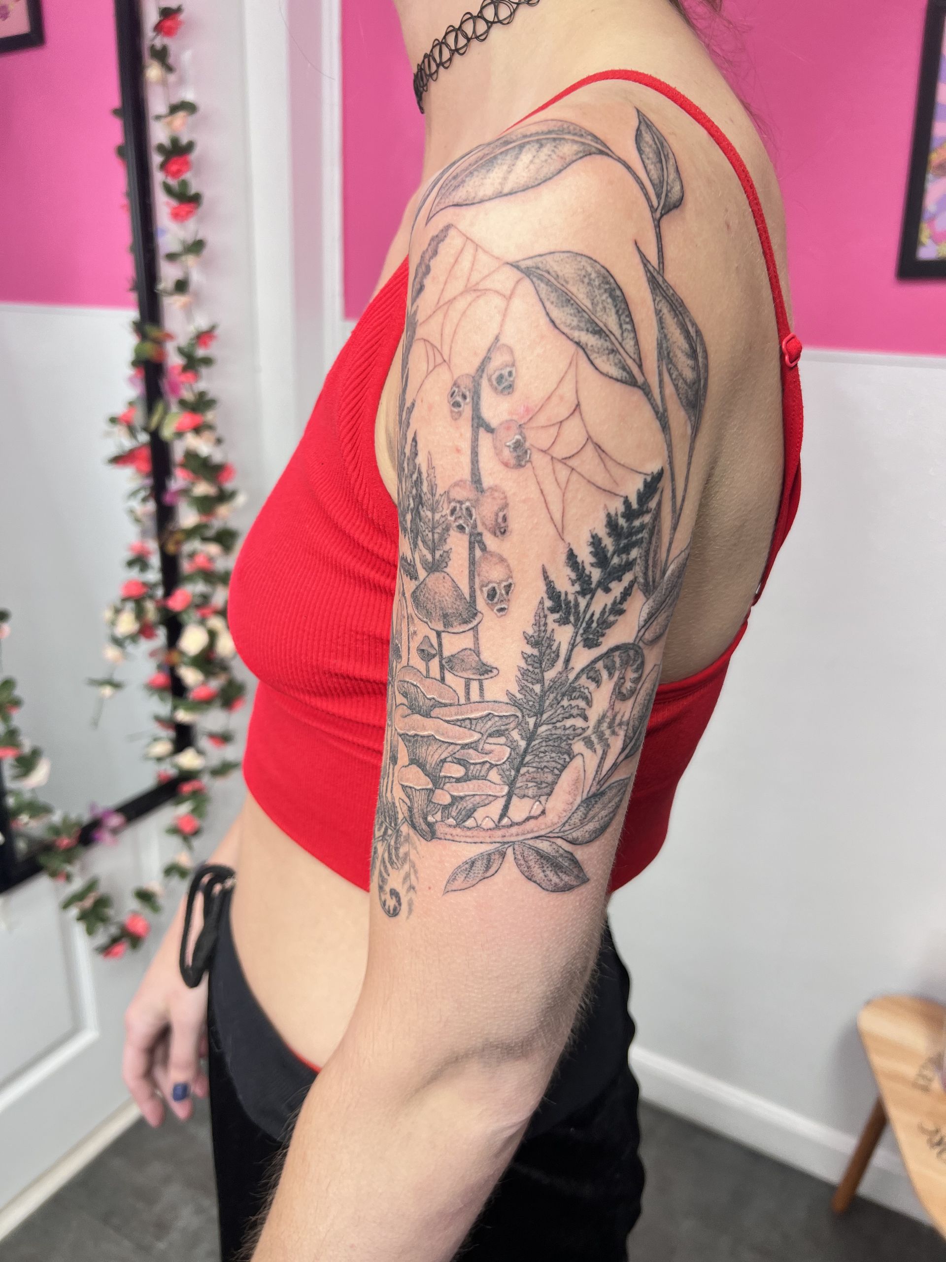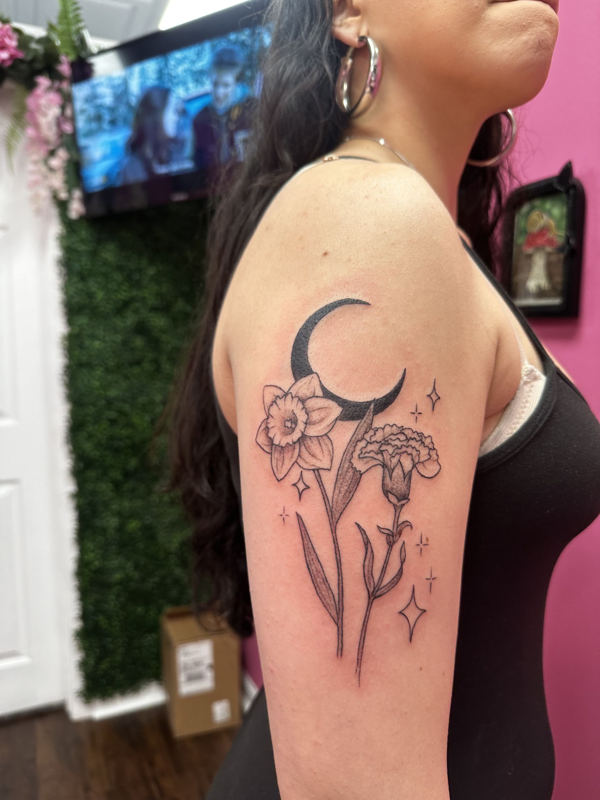 I'm Jakki! I am a female tattoo artist in Worcester specializing in fine line, and illustrative tattoos. I have been tattooing for 5 years and it never gets old. Pets and animal, nature and whimsical subjects are just a few of my favorites to create! As a proud member of the neuro-spicy LGBTQ community, I've made it my goal to be a go-to safe space for you! I create custom, one-of-a-kind designs in my private tattoo room so I can cater more to your individual needs during the tattoo process. Come check me out at Worcester's #1 rated tattoo shop, Elegance Piercing & Tattoo and start your next tattoo journey today!